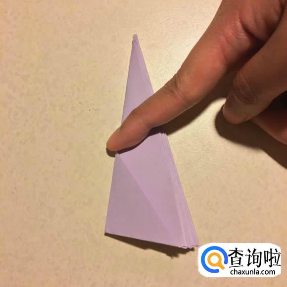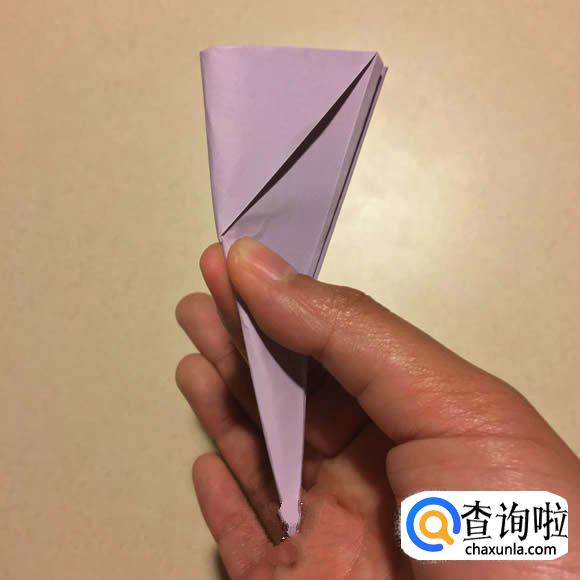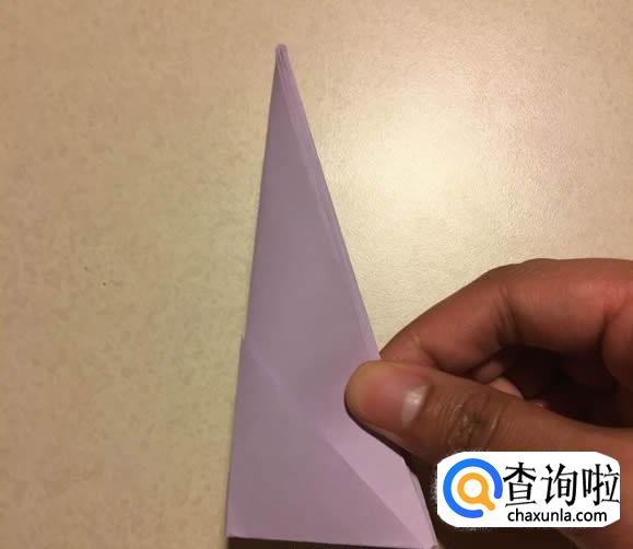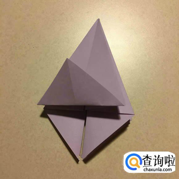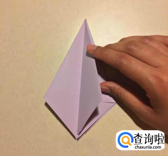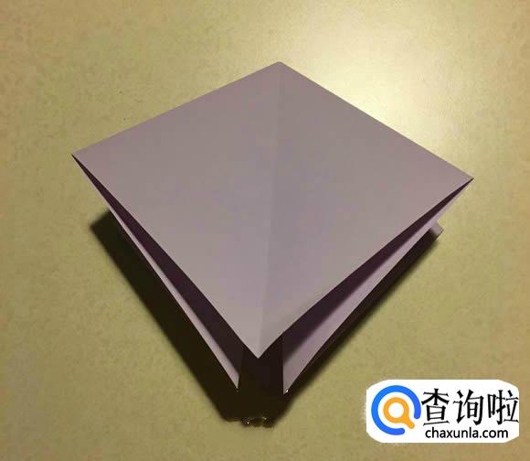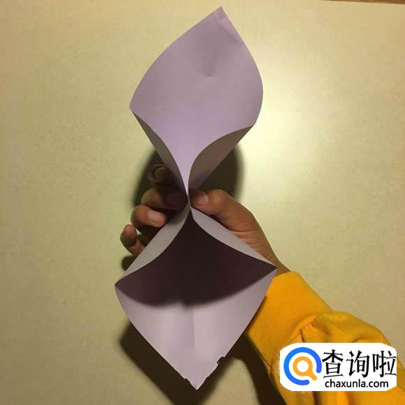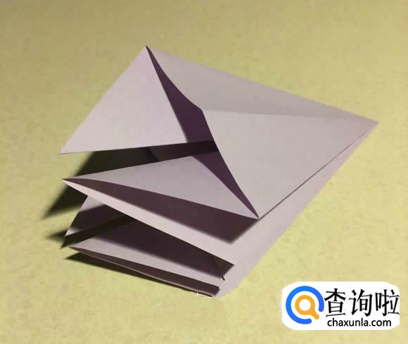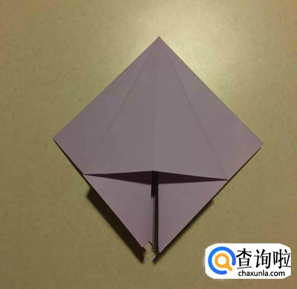 将一个翻盖翻到侧面,这样折纸模型就像一个倒置的风筝。