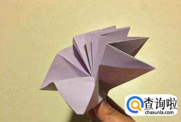 你的花上应该有八个花瓣,轻轻推开花瓣上的中心折痕,使它们看起来更圆润。