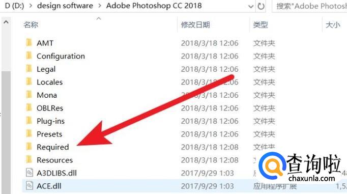 然后关掉ps软件,去ps的根目录中,找到Required文件夹。