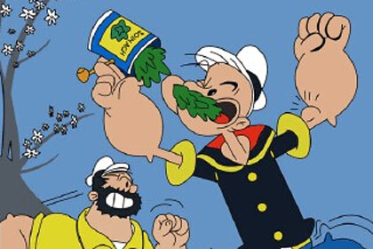 在漫画中,波比吃了“大力菜(菠菜)”便力大无穷,这个情节在当时的现实生活中曾产生强烈的效应,美国在20世纪30年代的菠菜销量增加了33%,当地菜农们开始疯狂地种植菠菜。1937年,菜农们为了纪念大力水手,特意在得克萨斯州的水晶城立了一个雕像,水晶城将自己称为“世界菠菜之都”,可见其影响之巨大。著名评论家马克•朗哥在《世界动画》杂志上称:“到1938年,大力水手代替米老鼠成为美国最受欢迎的人物形象。”大力水手衍生的《大力水手》游戏更是铭刻在几代人的记忆中。