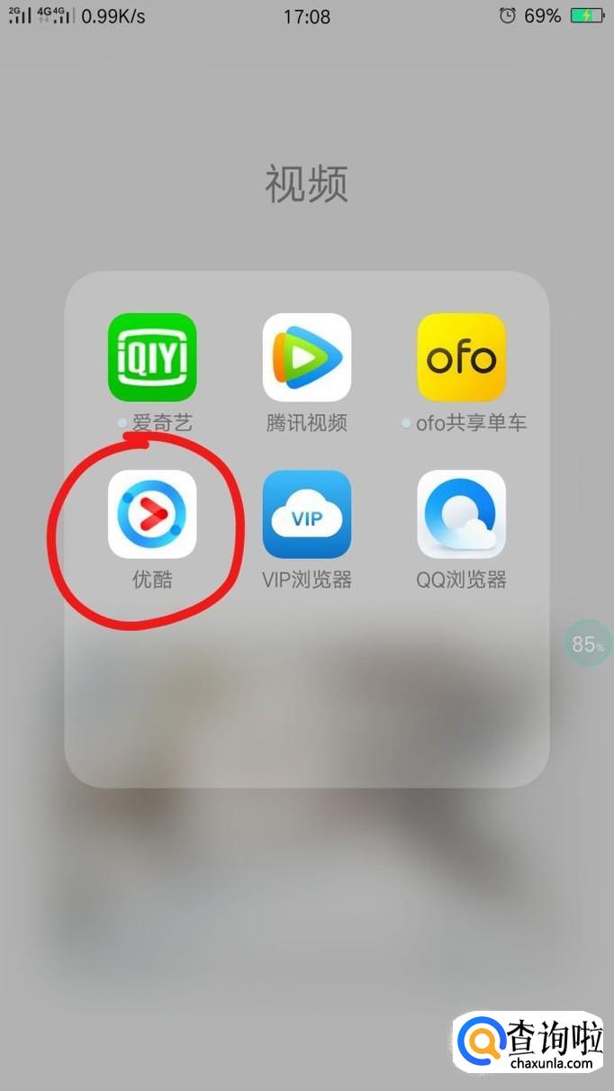 首先,找到手机内优酷的所在地,并且点击它打开