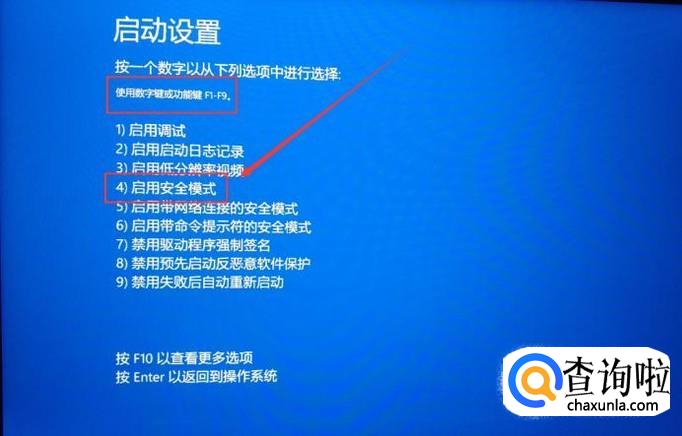 电脑重启之后,根据屏幕提醒点按数字,这里使用数字键4或F4,就能启动安全模式了。