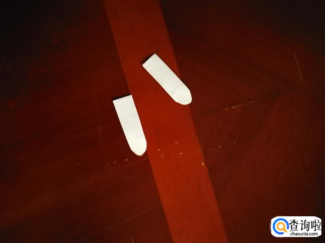 然后我们把纸反过来,翻到背面,按照如图所示的轨迹折两个小角。