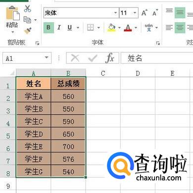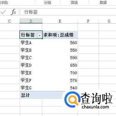 同样操作,鼠标放在“总成绩”这里,拉到“值”这里。