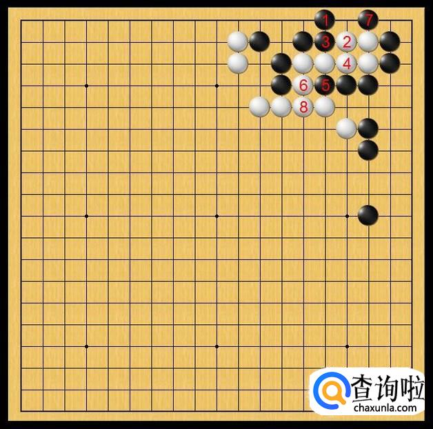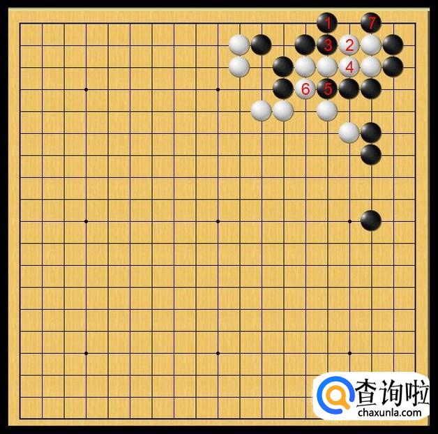 这个时候,黑棋于右上角黑7处爬,黑7的爬带有黑棋强行渡过想法。如图所示。