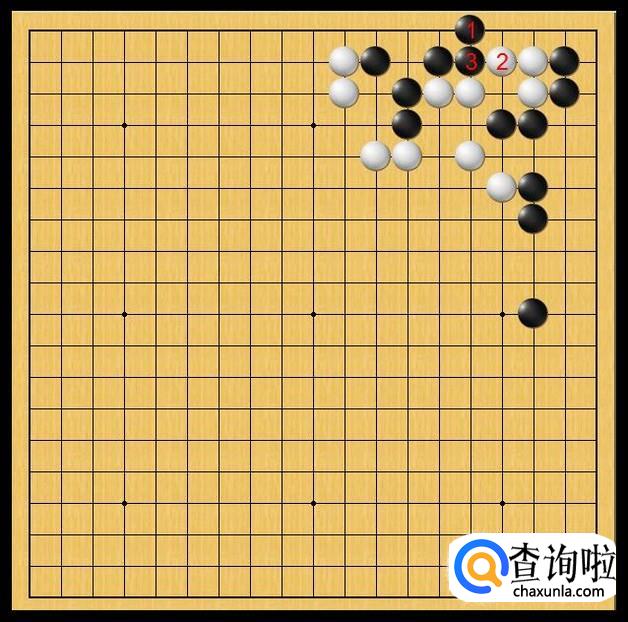 黑棋于黑3处粘上,黑3粘上后,巩固了黑棋左面底线上的黑1,同时,对白棋形成了分断的局面。如图所示。
