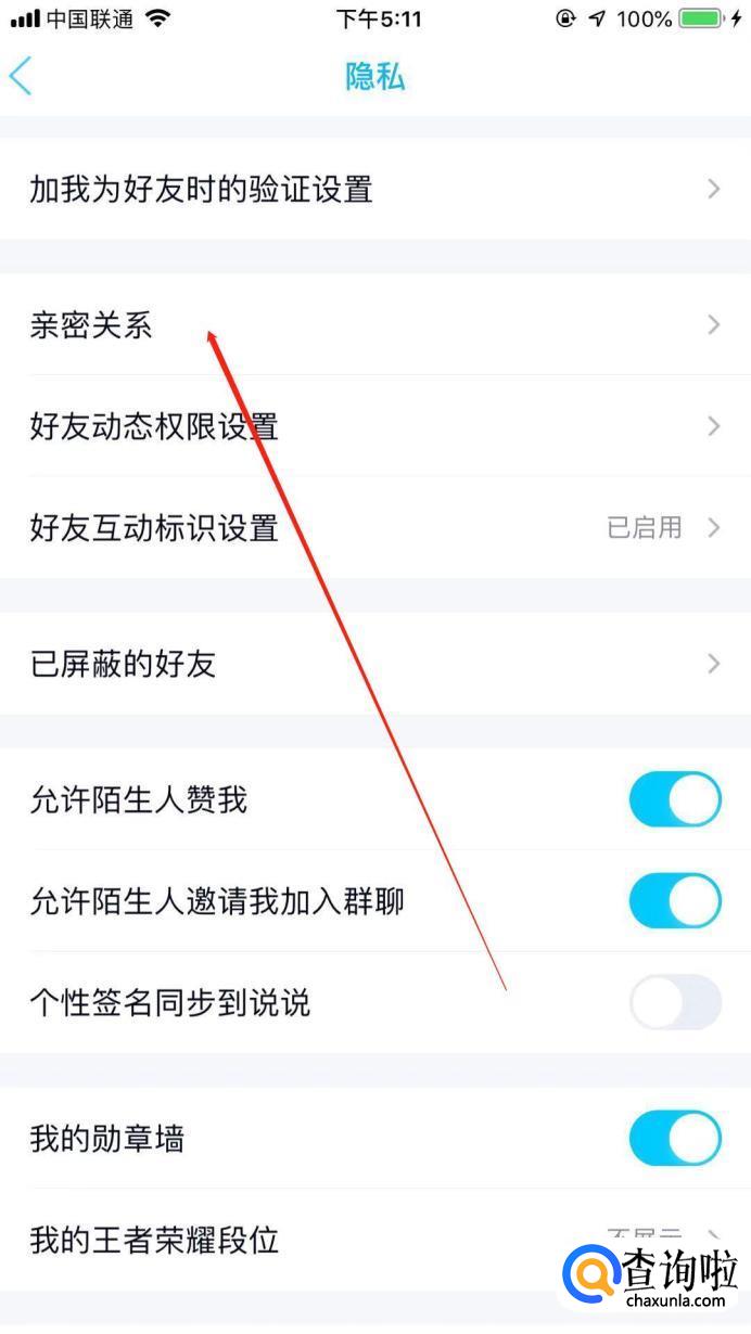 我们会看到“亲密关系”选项,点进去。