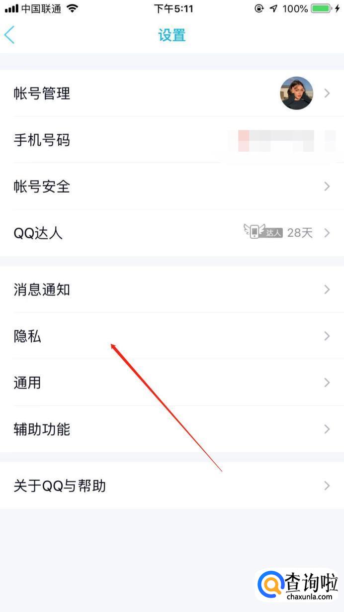 在设置界面中,找到“隐私”,点击进入。