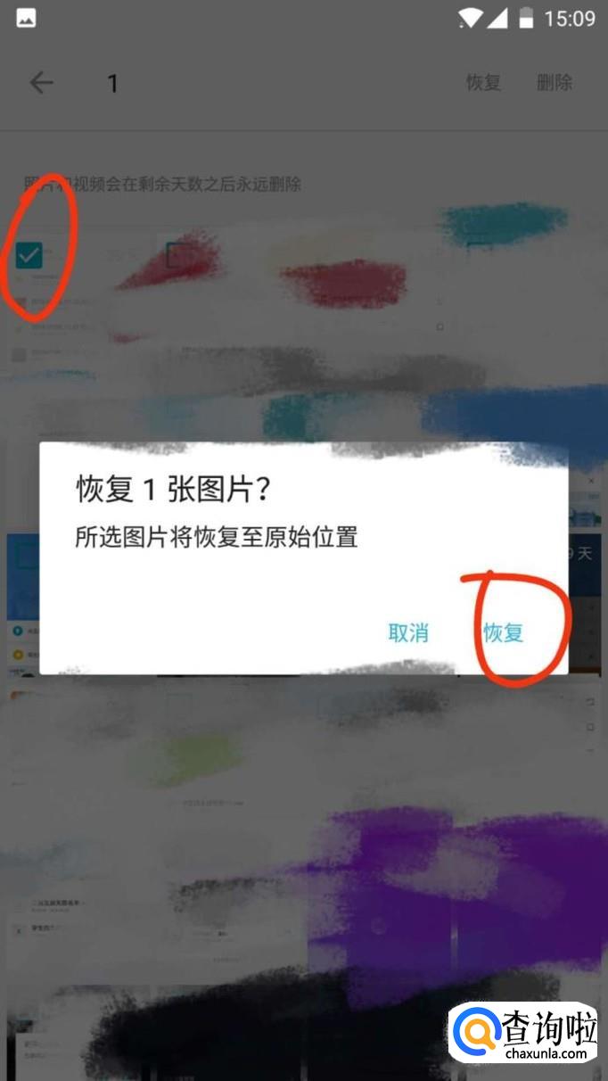 点击之后,系统会提示你,是否真的要恢复照片,点击“恢复”,即可恢复照片