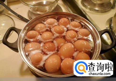 取一煮锅,加入半锅清水,把鸡蛋用水冲洗干净后,放入锅里煮熟,再剥去蛋皮备用。煮5分种就可以,不用时间太长,否则就煮老了,口感不好。
