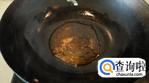 炒锅里放入少许水,再把白糖入锅翻炒,炒到把糖化开,炒成焦色,注意不要糊了。