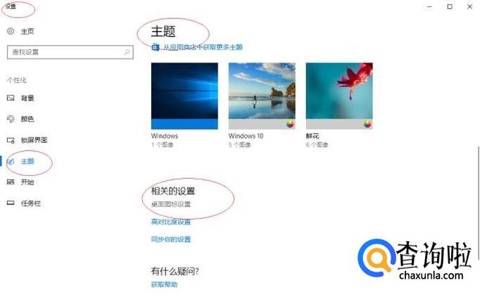 唤出"设置"程序窗口,点击左侧"主题"图标。
