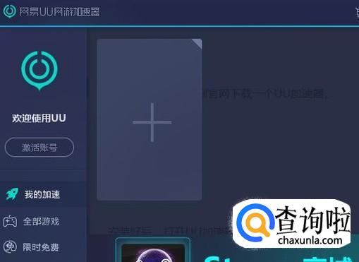 安装好后,打开UU加速器,找到界面上的加号键。