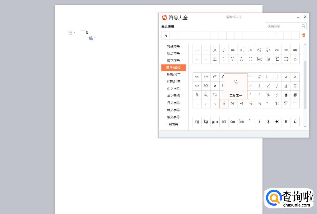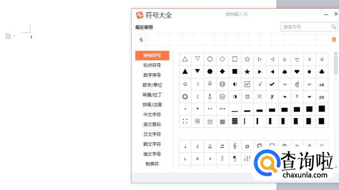 通过输入法打出“二分之一”,首先打开word,切换到搜狗输入法,然后按住“分号键+F”点击“更多特殊符号”。