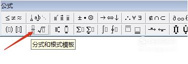 然后选择“分式和根式模板”按钮,这时我们从弹出菜单中选择”分式“。