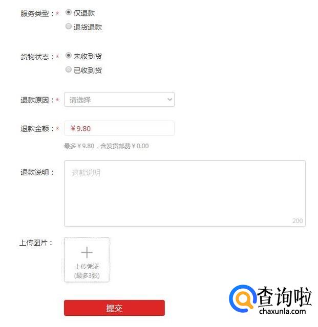 接着我们写入详细的信息,退款的金额或者退货的理由提交即可。