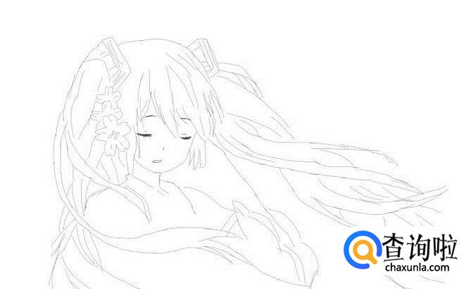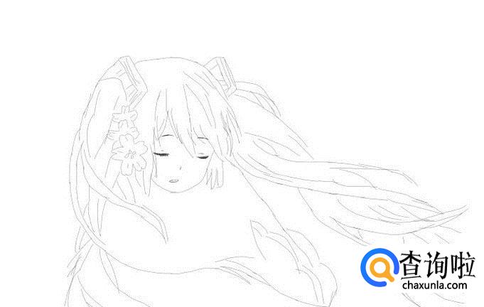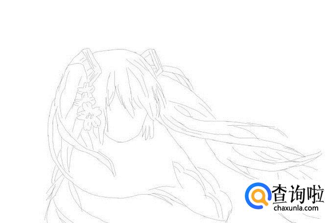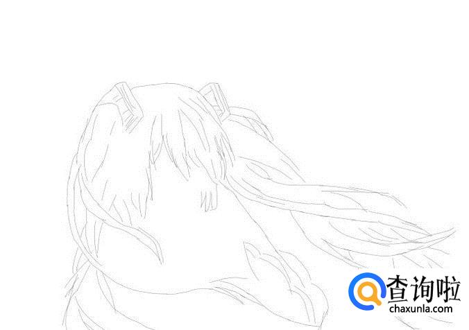 先画出初音未来的头发,然后再画出头发的细节,如图所示: