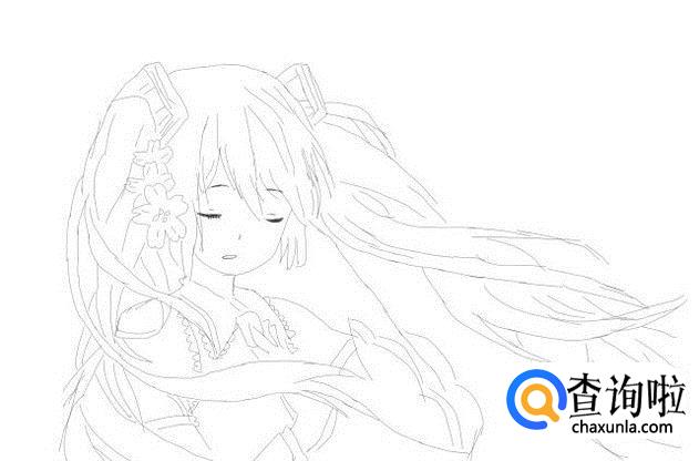 最后在初音未来的身体上画出初音未来的衣服细节,这样动漫初音未来就画好了,如图所示: