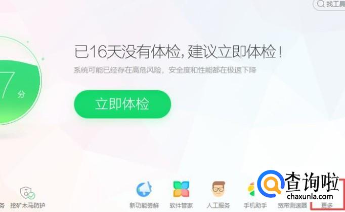 首先,我们打开我们电脑上面的360安全卫士,然后我们点击更多;