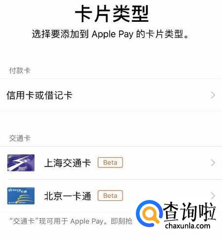 点击进行选卡。目前苹果手机上的交通卡使用只能在北京和山海,因此如果不是在这两个地方的人的话,是不能用苹果手机来刷手机使用的。