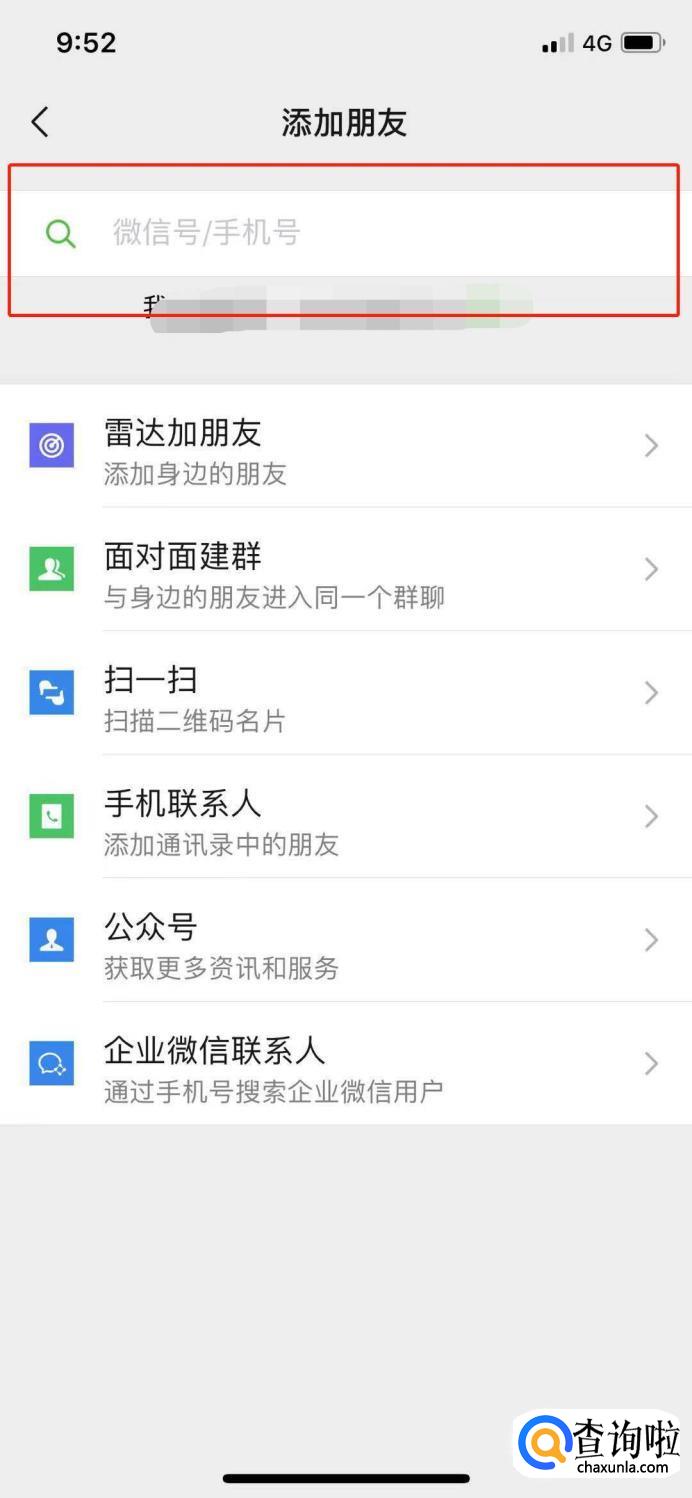 点击搜索栏,可填入微信号、QQ号、手机号。