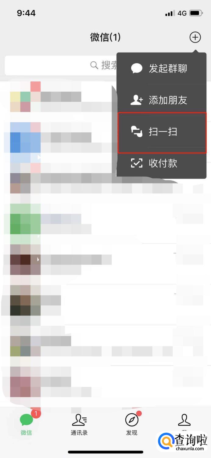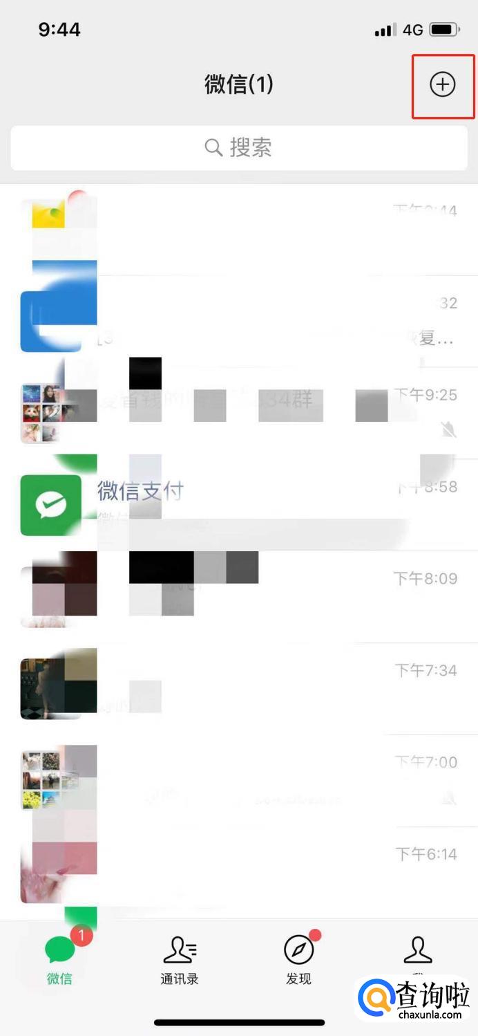 打开微信右上角的“小加号”。