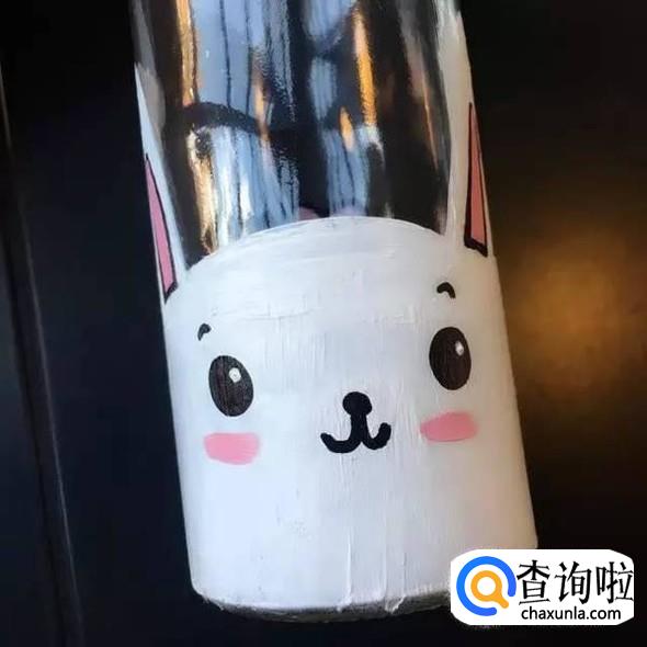 首先,我们选一个饮料瓶,在瓶身上画一个兔子脑袋的图案,如下图。