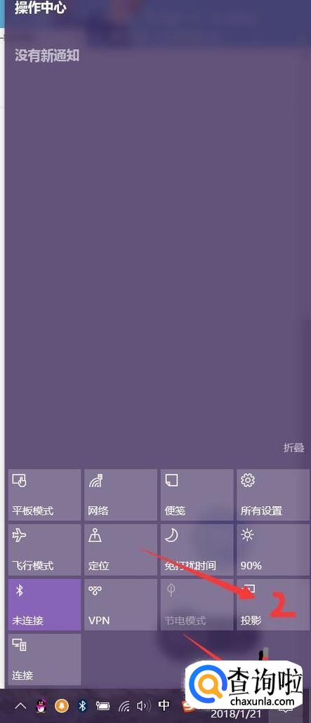 ②我们之后,找到笔记本电脑右下角标志点击数字1处,然后点击投影,点击复制会出现一模一样的屏幕,点击拓展会分屏幕。