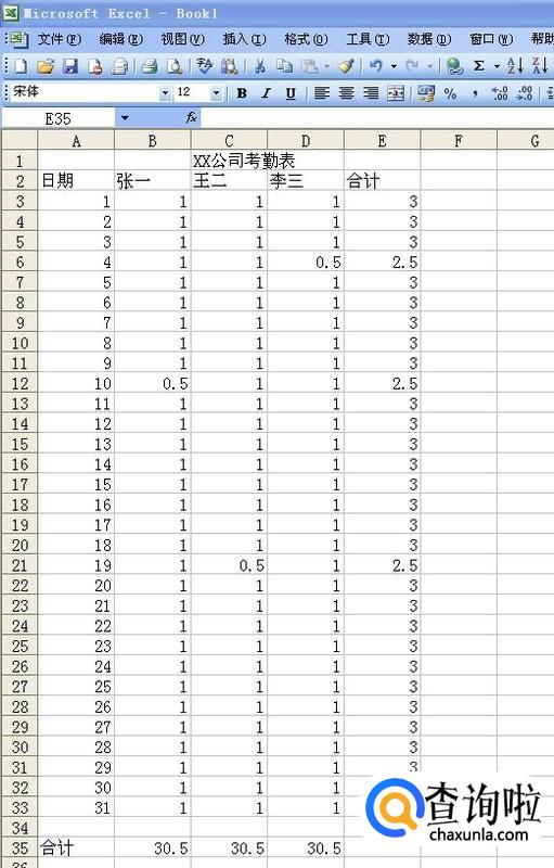 用EXCEL制作考勤表,简单方便,每天每人只需输入一个数字,就能自动计算出每个人的出勤情况,下面就教您怎么制作考勤表。