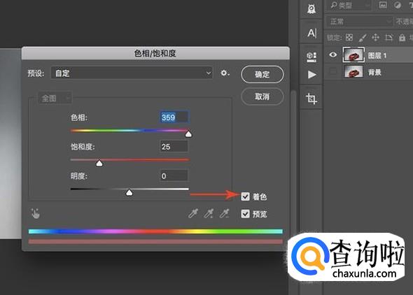 勾选着色时候,对色相饱和度以及明度的数值进行适当调整,即可快速调整颜色了。