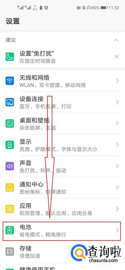 进入设置后,找到最下方电池选项。