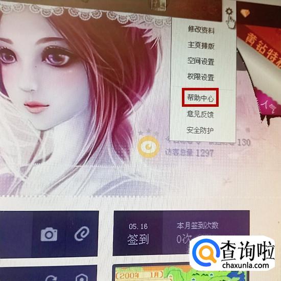 进入空间后,点击右上角的设置键,在设置项目里点击帮助中心,如图所示。