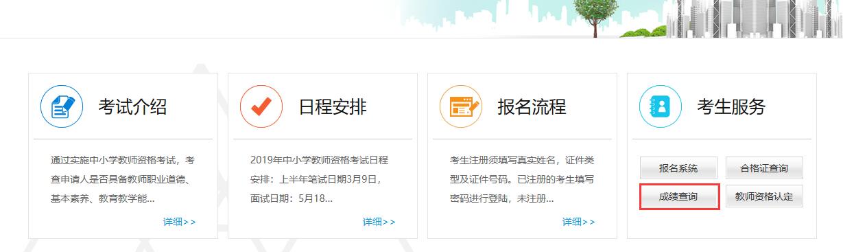 进入到教师资格考试官网后,在首页面会有考生服务,点击考生服务中的成绩查询一栏,就可以开始查询成绩了。