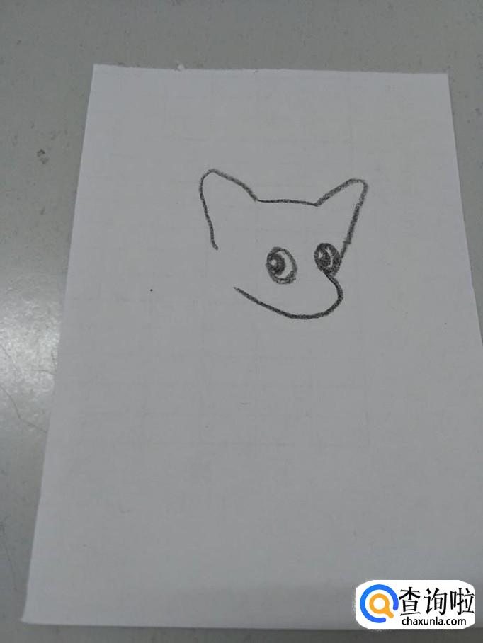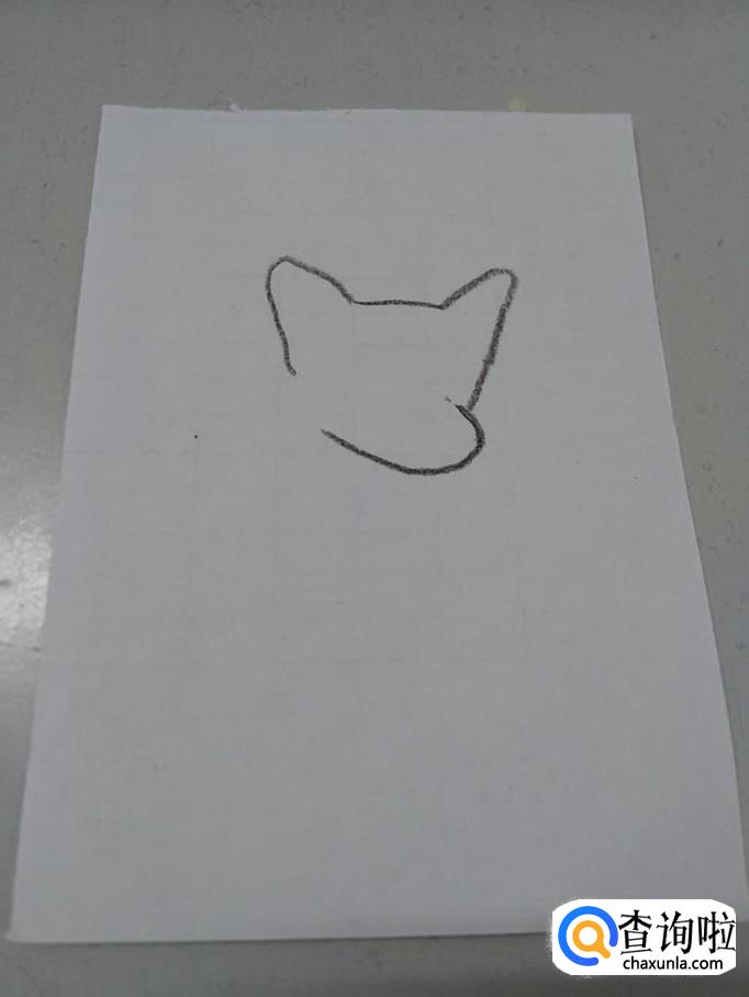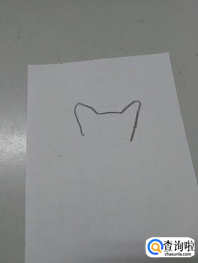 先用笔在纸上画两个相对的7,表示它的耳朵,在两只耳朵之间画一条横线,表示它的头顶。
