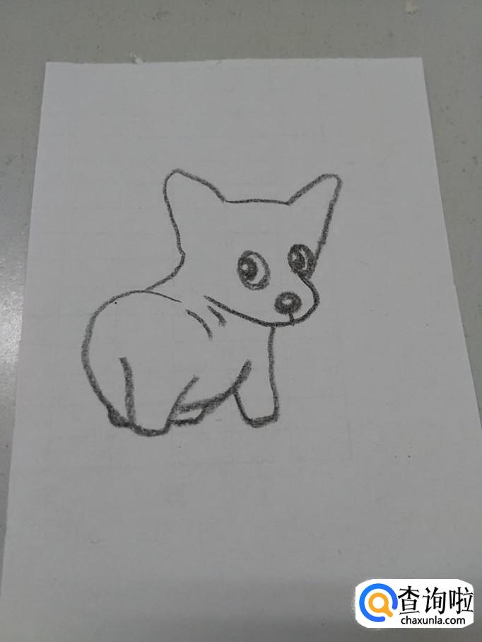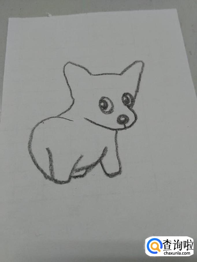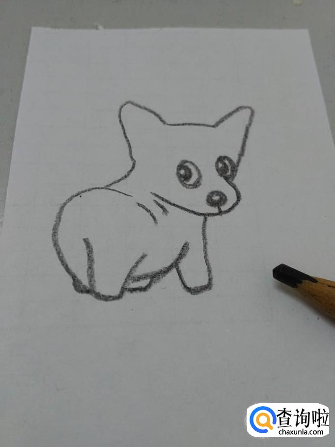 最后,在臀部右侧两一条一短两条弧线,表示它转身时,身上的皱褶,到此,小柯基就画完了。