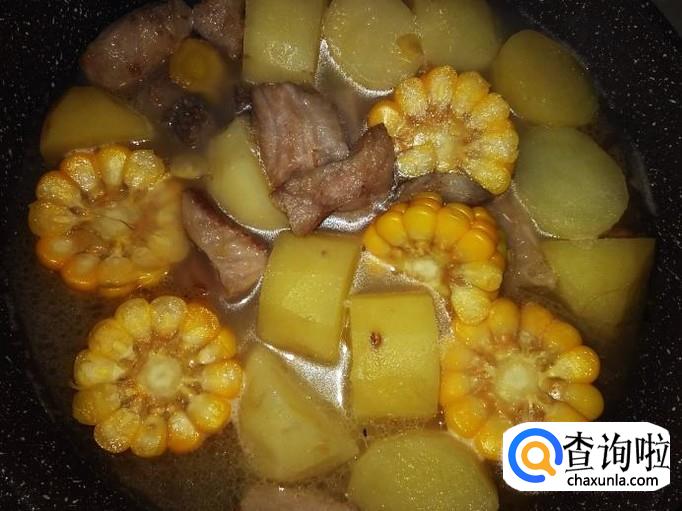 清甜的土豆玉米猪肉煲就做好了。
