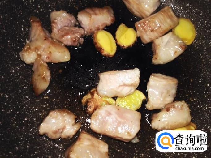 煎至有点焦黄色下姜片翻炒一下。