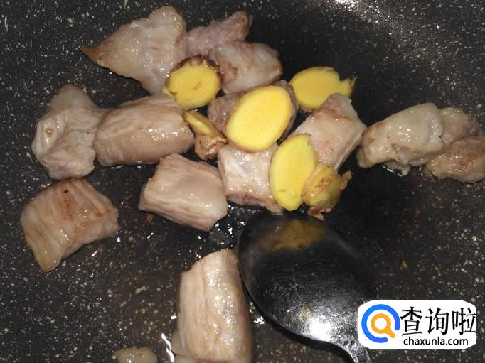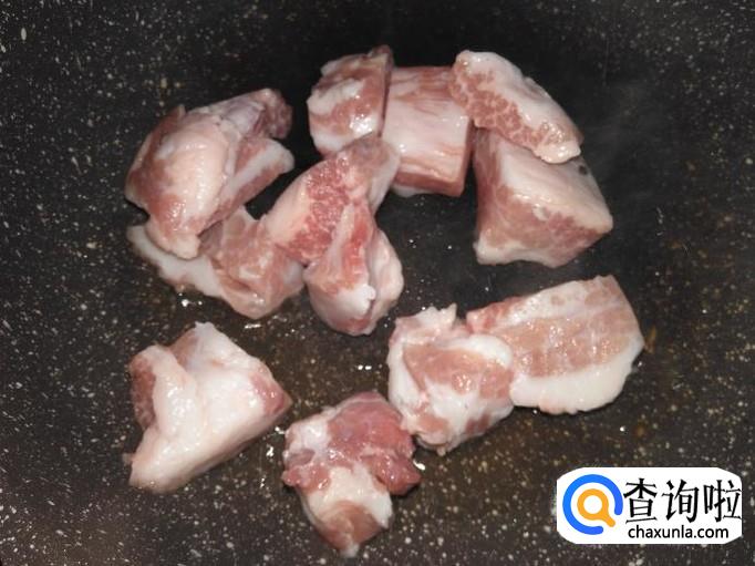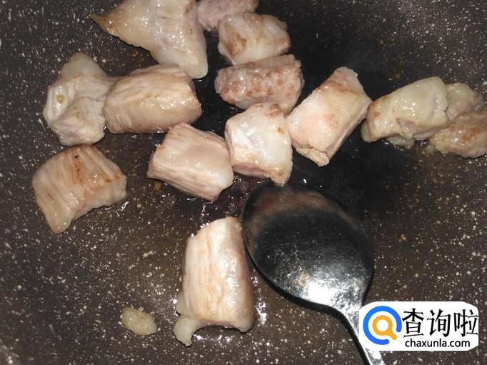 放猪肉进去用小火煎。