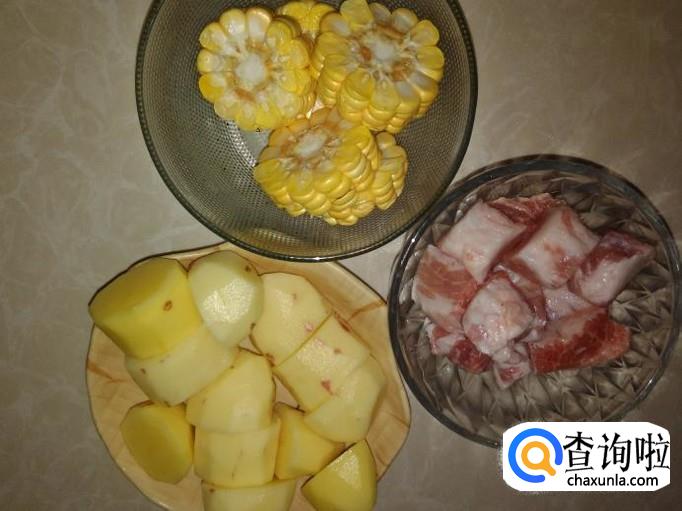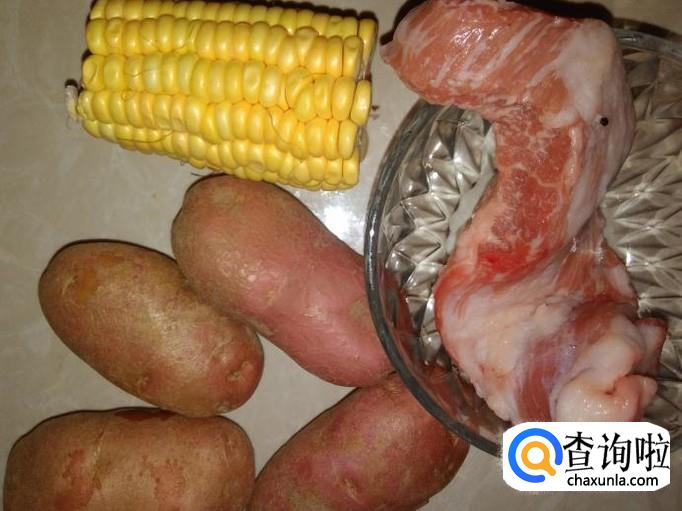 猪肉是用排骨批下来的肉,【这种肉很脆又好吃】土豆、嫩甜玉米准备好。