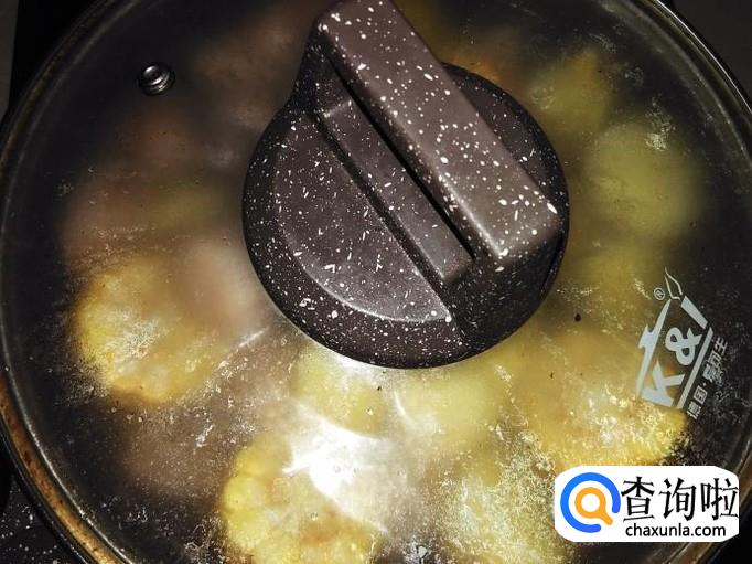 加水再加玉米进去。【水量刚好没过食材】