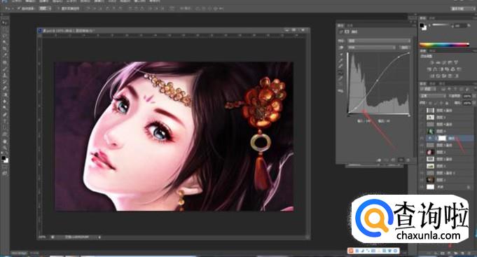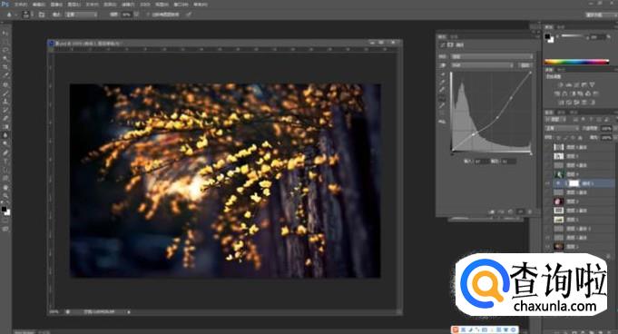 可以用【调整图层】——【曲线】对图像的对比稍微增加一些,效果也会更好,如图: