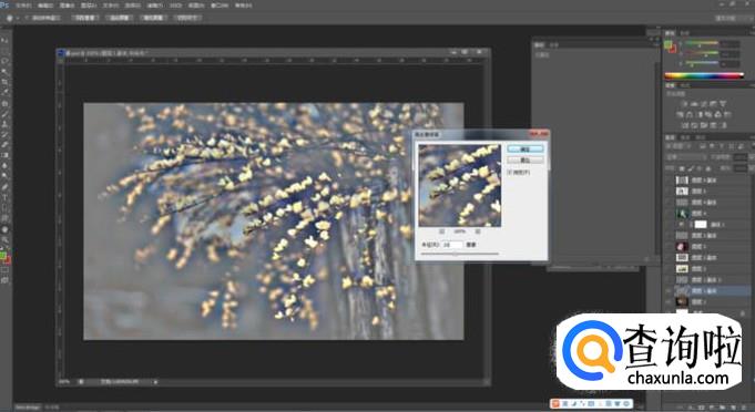 用模糊工具将多余的清楚的地方模糊一下,只要聚焦点图像清晰就行,因为在图像处理中没有刚刚好,只有调整之后再比较查看效果,不足的地方再去修改
