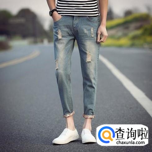 首先,第一种就是现在特别流行的破洞裤。这种裤子要求穿的时候最好不要穿袜子,然后裤腿一定要在脚腕以上部分,这样子才会显得时尚又好看。