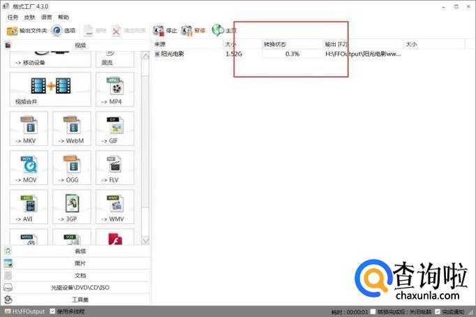 视频文件的格式转化需要消耗较长的时间,我们耐心等待文件转换完毕之后,就可以在输出文件夹中看到转换后的视频文件了。