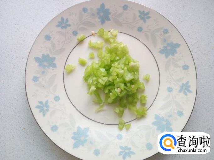 青尖椒用水清洗干净,控干水分,切成末,备用。