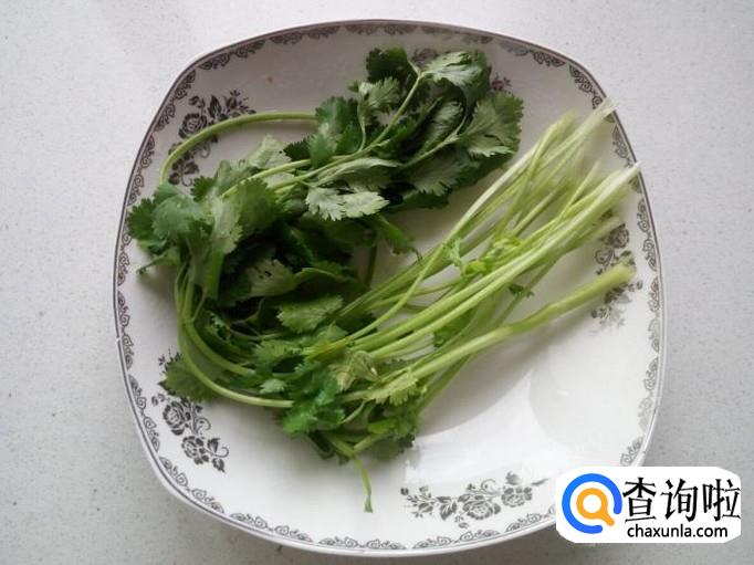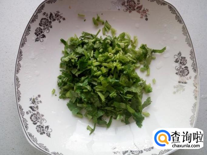 香菜收拾清洗干净,控干水分,切成末,备用。