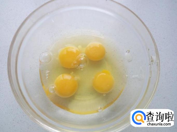 鸡蛋打入碗中,搅拌成鸡蛋液。