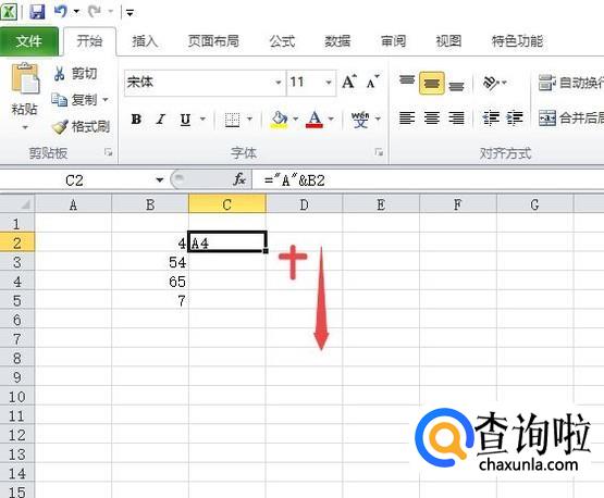 之后我们在单元格中输入="A"&B2,然后我们按回车键;