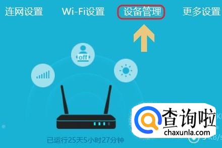 使用密码登录以后,在首页的最上方我们找到“设备管理”或者相关的选项,不同型号的路由器这里的叫法也有差异;