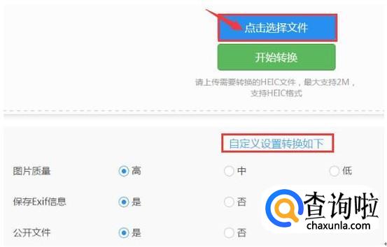 点击“点击选择文件”按钮,添加需要转换的文件。也可以设置一下自定义转换。